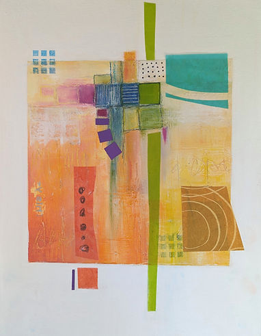 The subject is color balance. It was composed by feeling the weight of colors and shapes and finding comfort in that chaos. It is acrylic and pastel on textured canvas. 30"x22"
